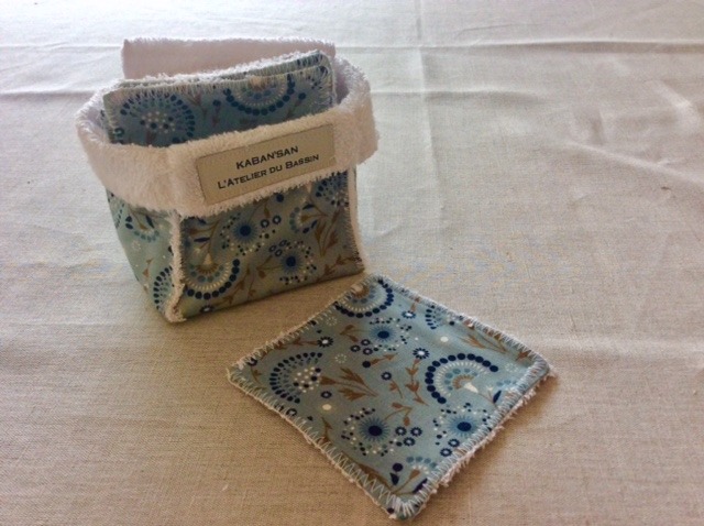 Ces carrés démaquillants et leur panière assortie sont réalisées à la main par Kaban San, L’Atelier du Bassin d’Arcachon et du Cap Ferret.