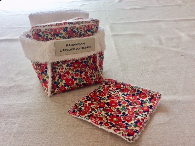 Ces carrés démaquillants et leur panière assortie sont réalisées à la main par Kaban San, L’Atelier du Bassin d’Arcachon et du Cap Ferret.